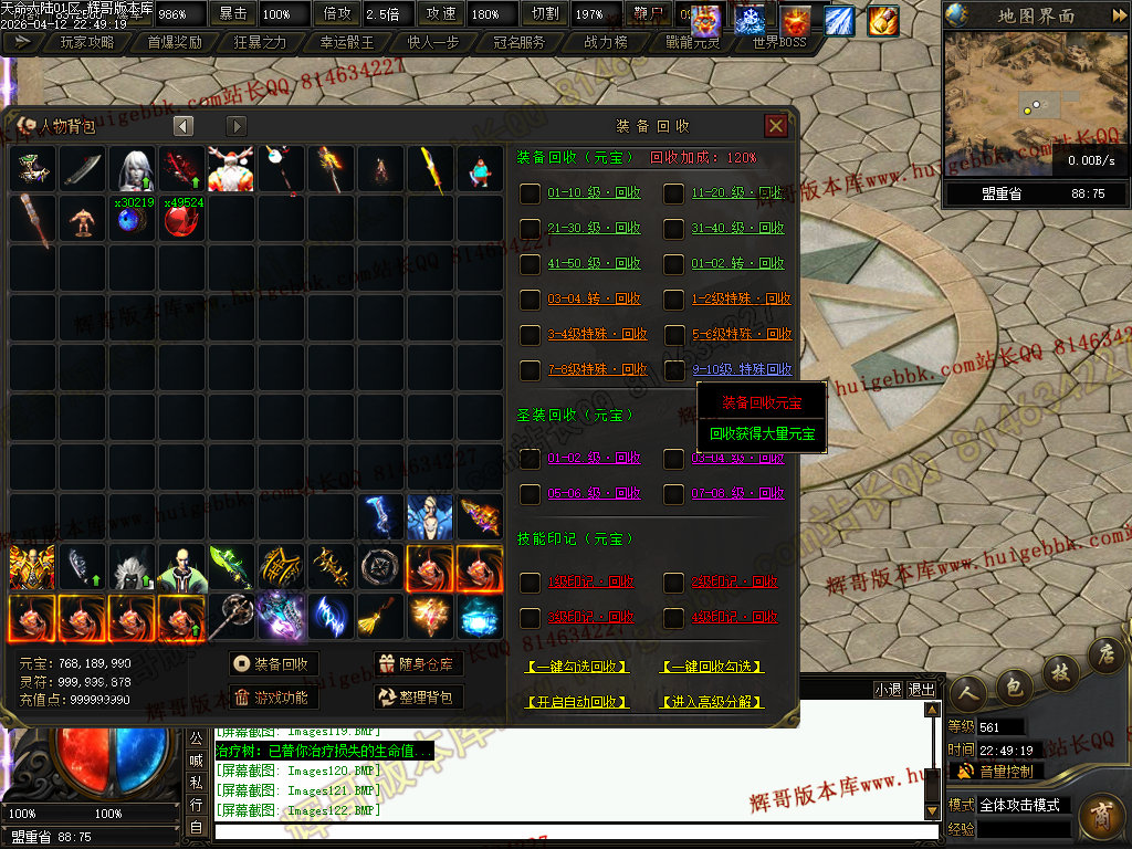 ③兑换500元元宝充值→→→→增加超高爆率,以及怪物连爆几率+30%