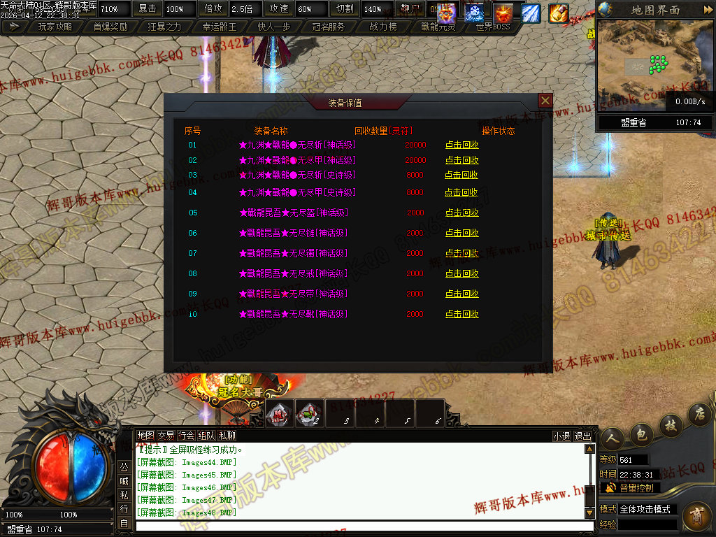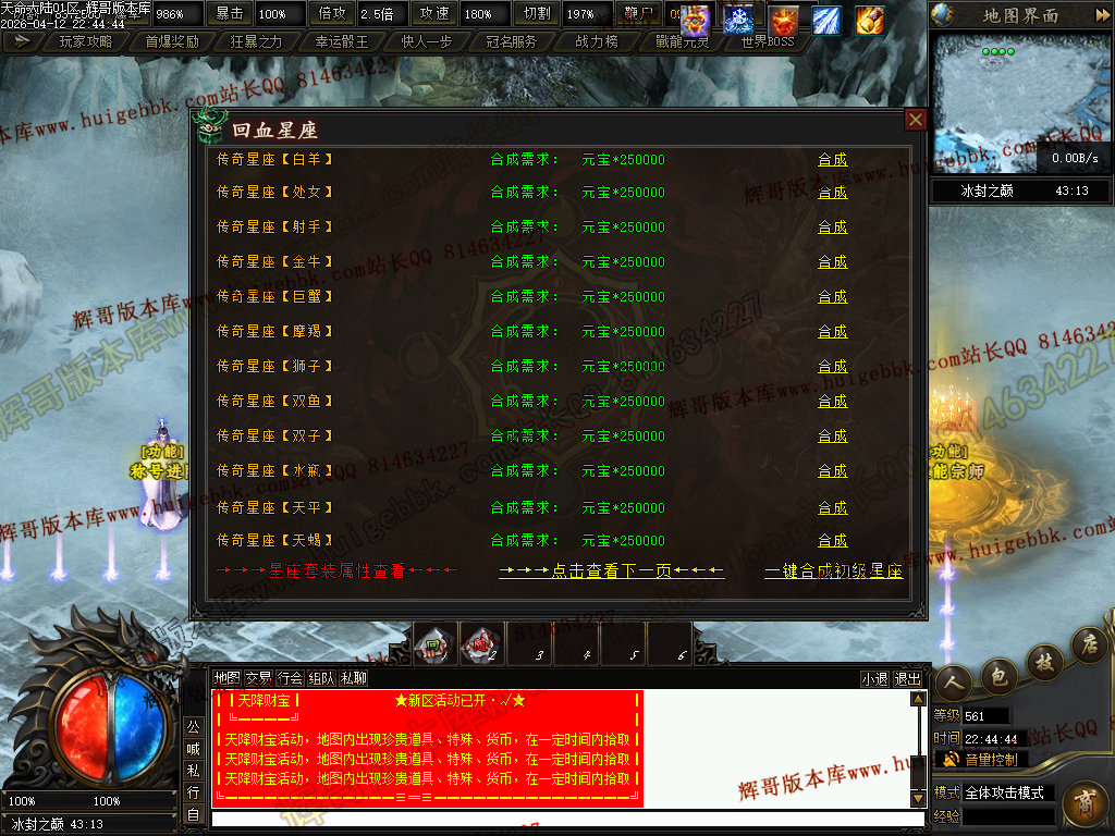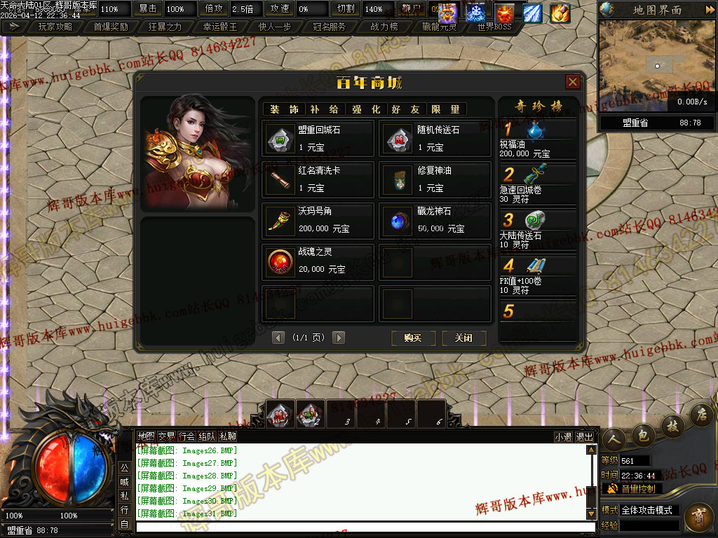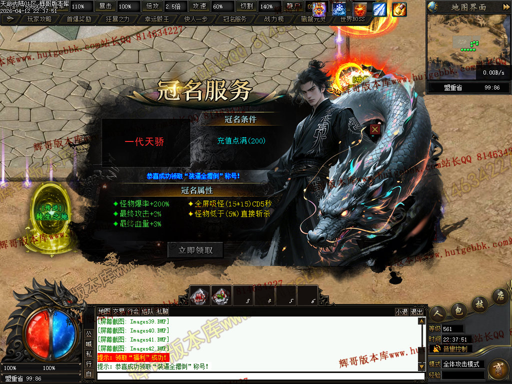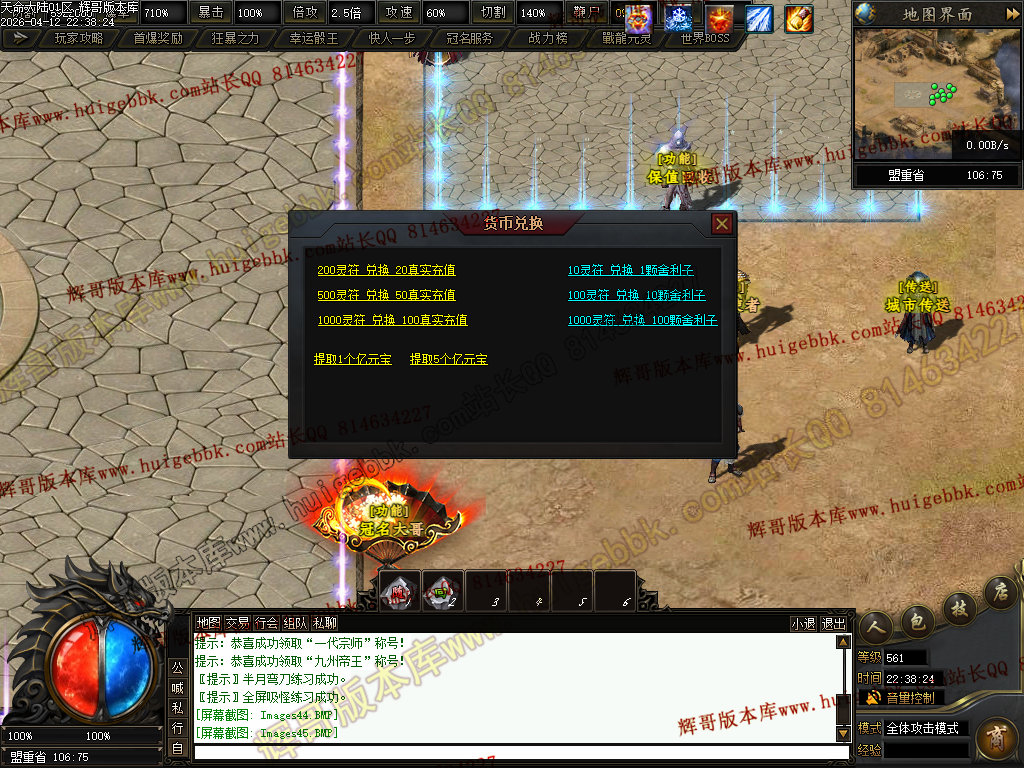 ③兑换200元元宝充值→→→→增加超高爆率,以及怪物连爆几率+15%