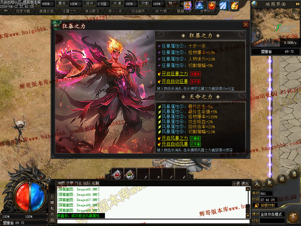 ②开启天选之人→→→→→→→→→获得范围切割,超高爆率,打怪速度提升N倍