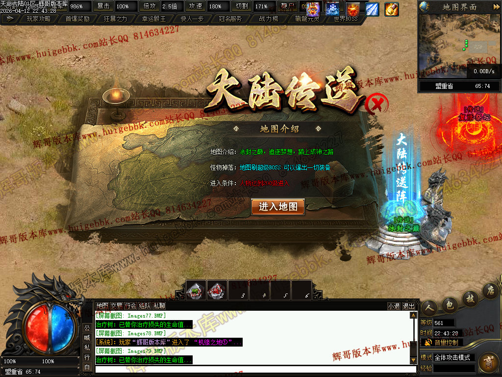 ③:前往新手地图,击杀怪物可快速获得起步装备,本服前期首爆名额99名,足够玩家获取启动资金