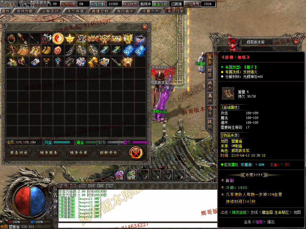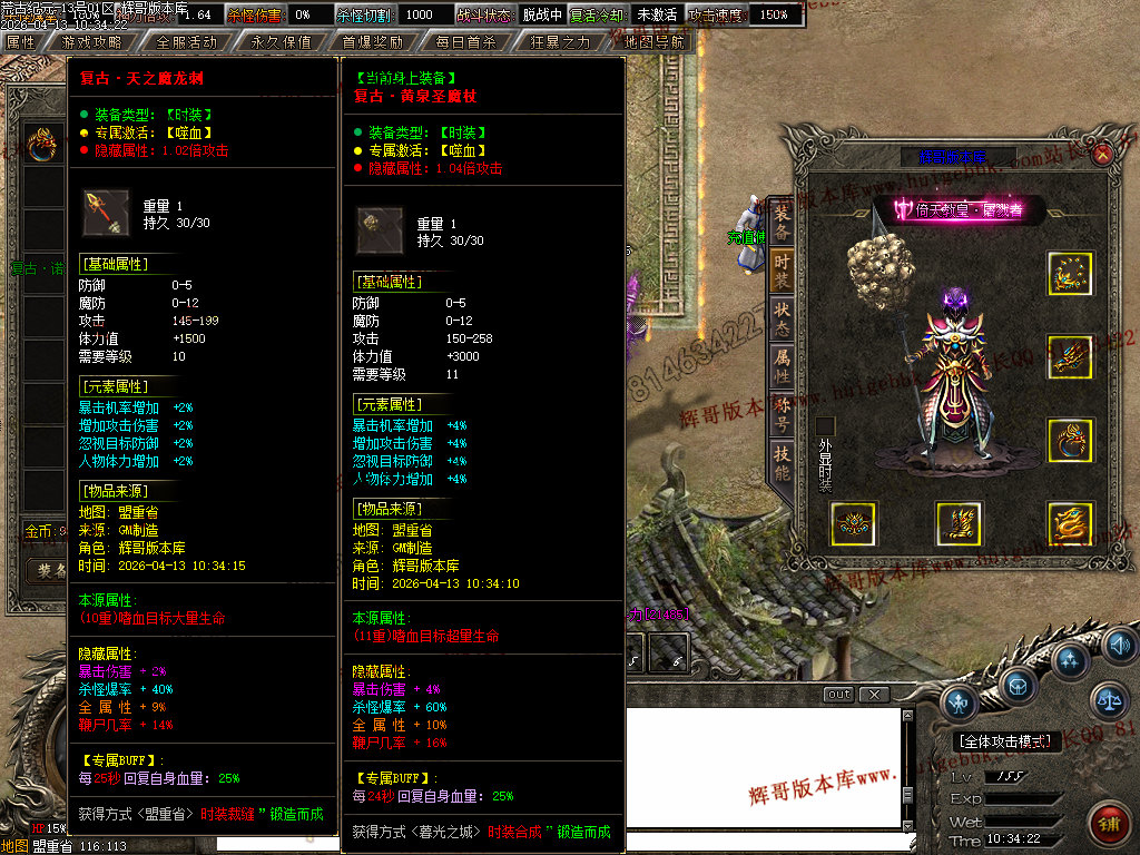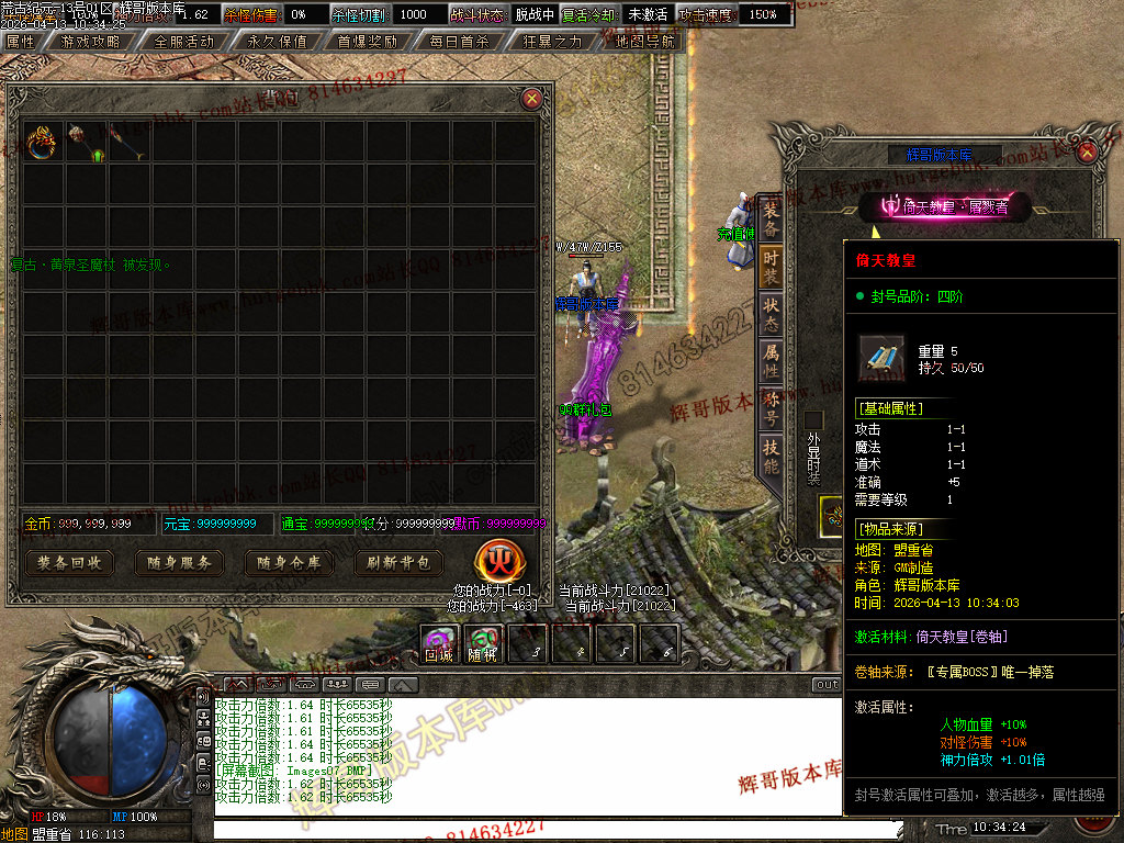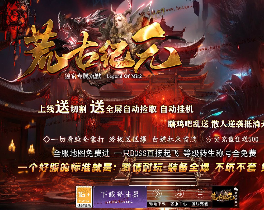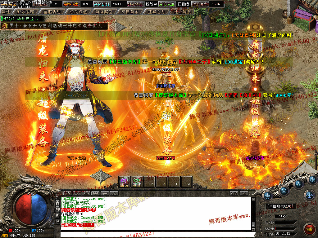 [版本介绍]: |怪物爆率永不关闭,限时首爆首杀奖励过万,所有终极可爆无限制!