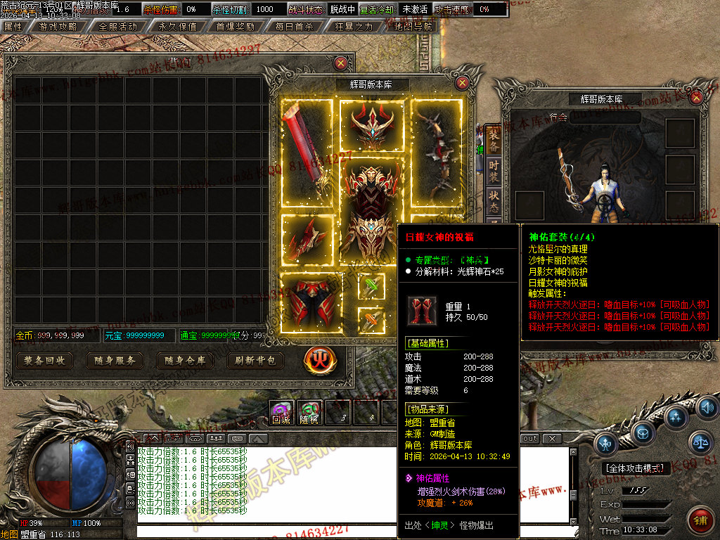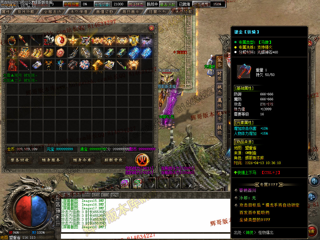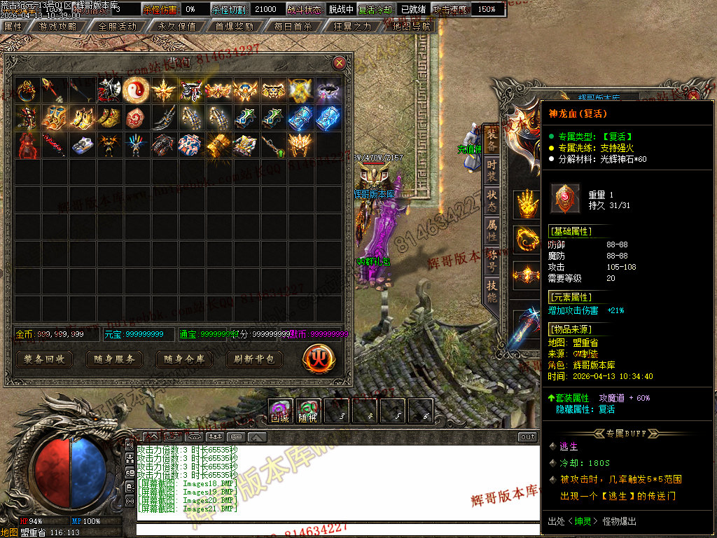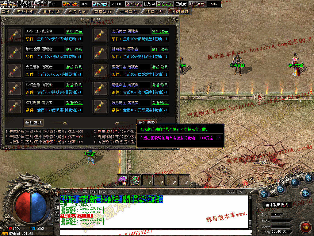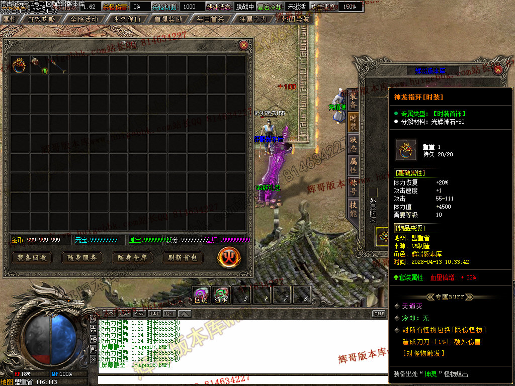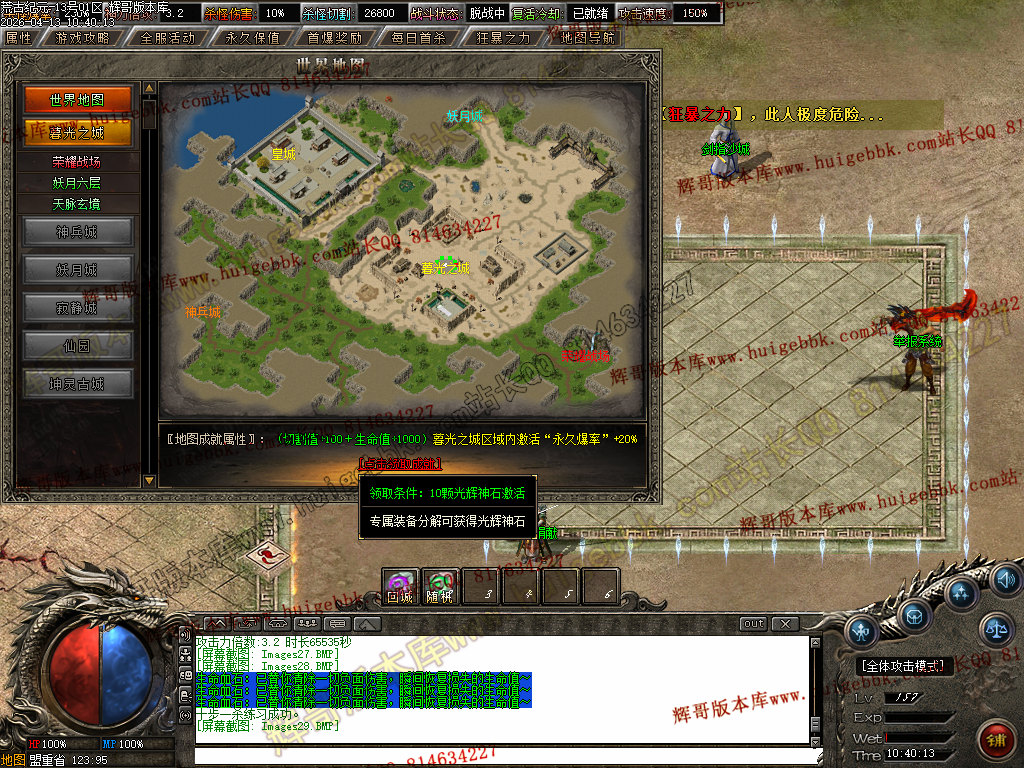 [版本介绍]: |怪物爆率永不关闭,限时首爆首杀奖励过万,所有终极可爆无限制!