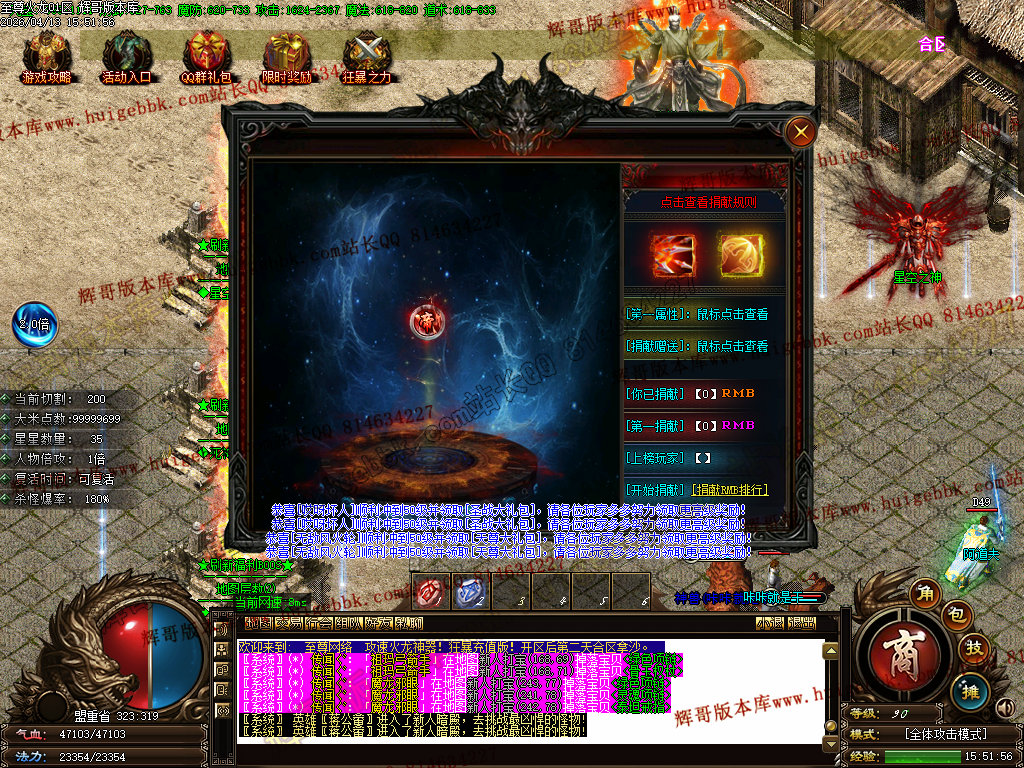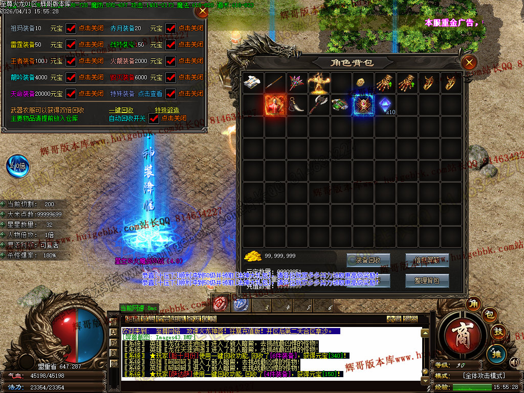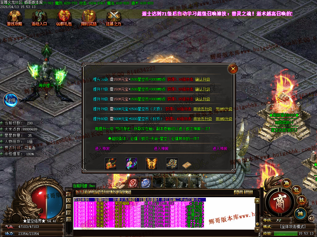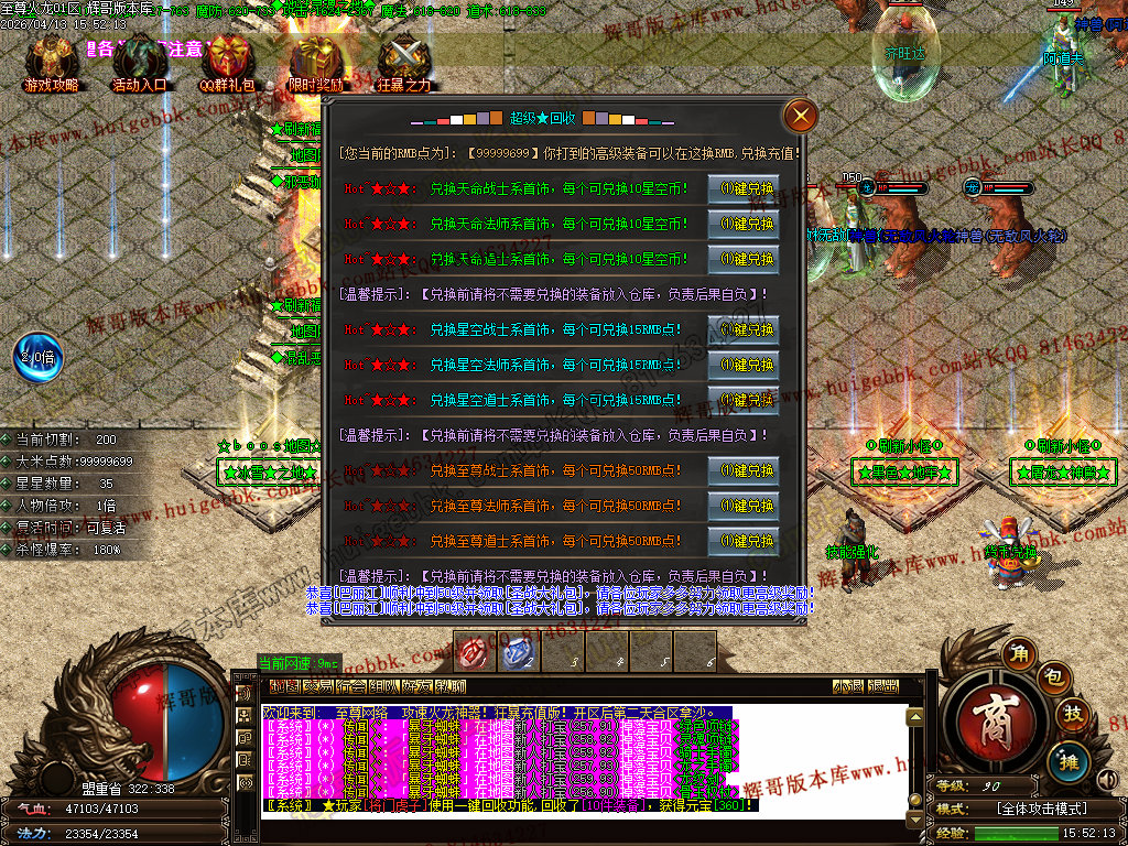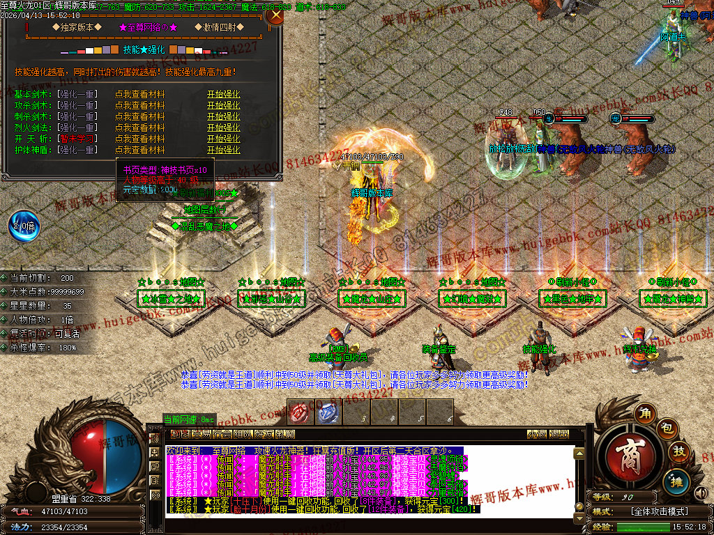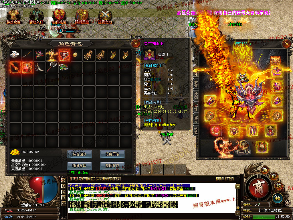 版本介绍:装备排行:王者→火龙→龙吟→毁灭→天命→星空→终极(爆率全开)