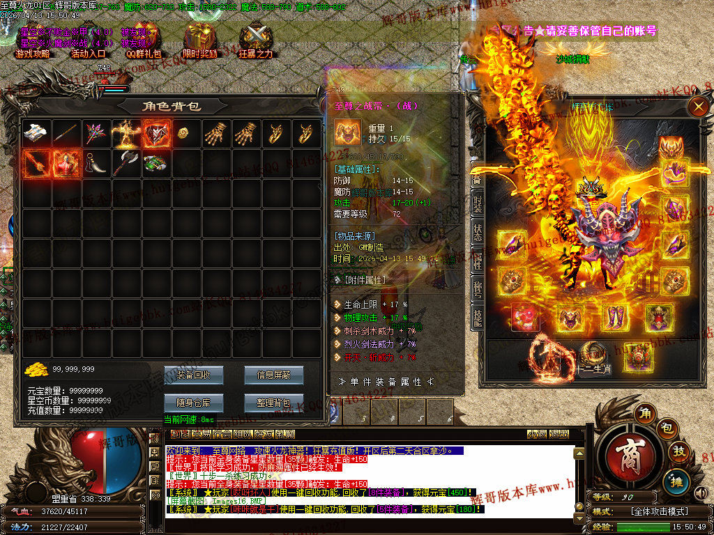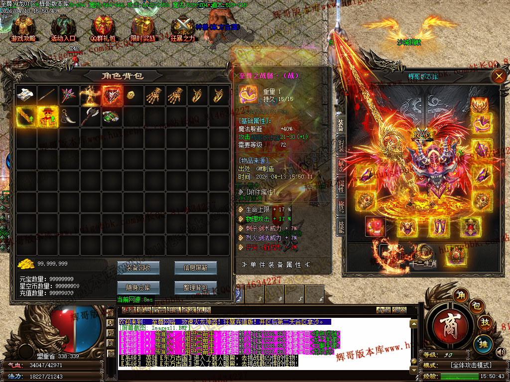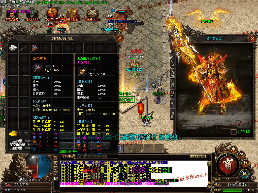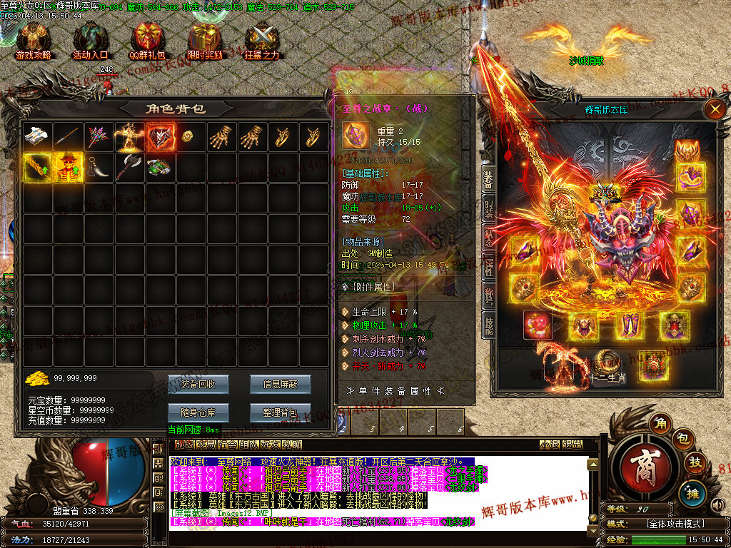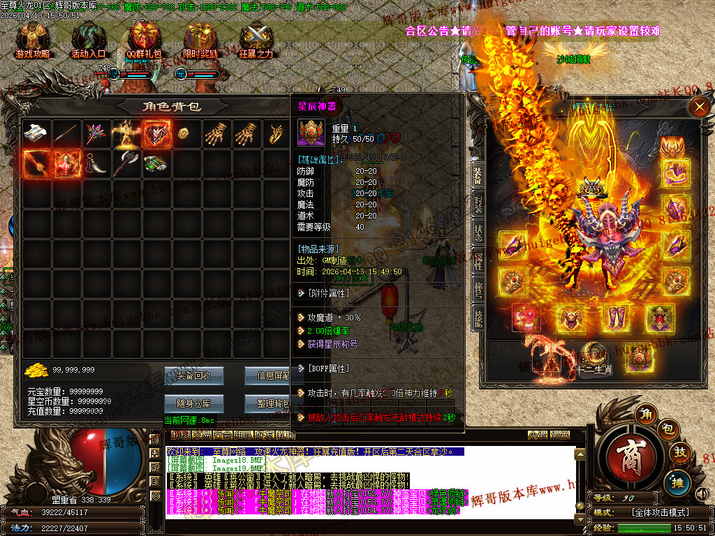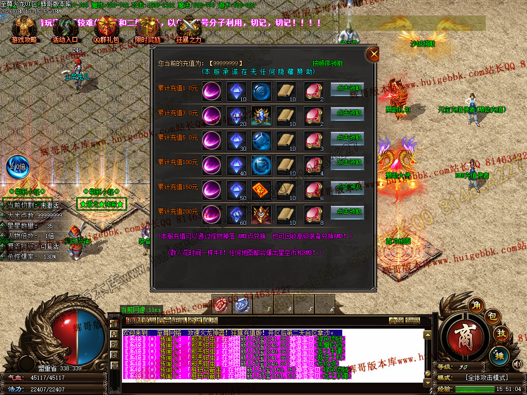 版本介绍:装备排行:王者→火龙→龙吟→毁灭→天命→星空→终极(爆率全开)
