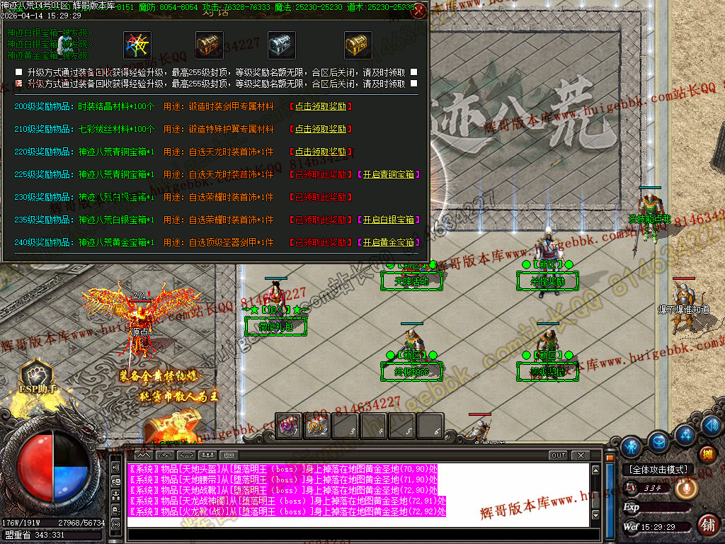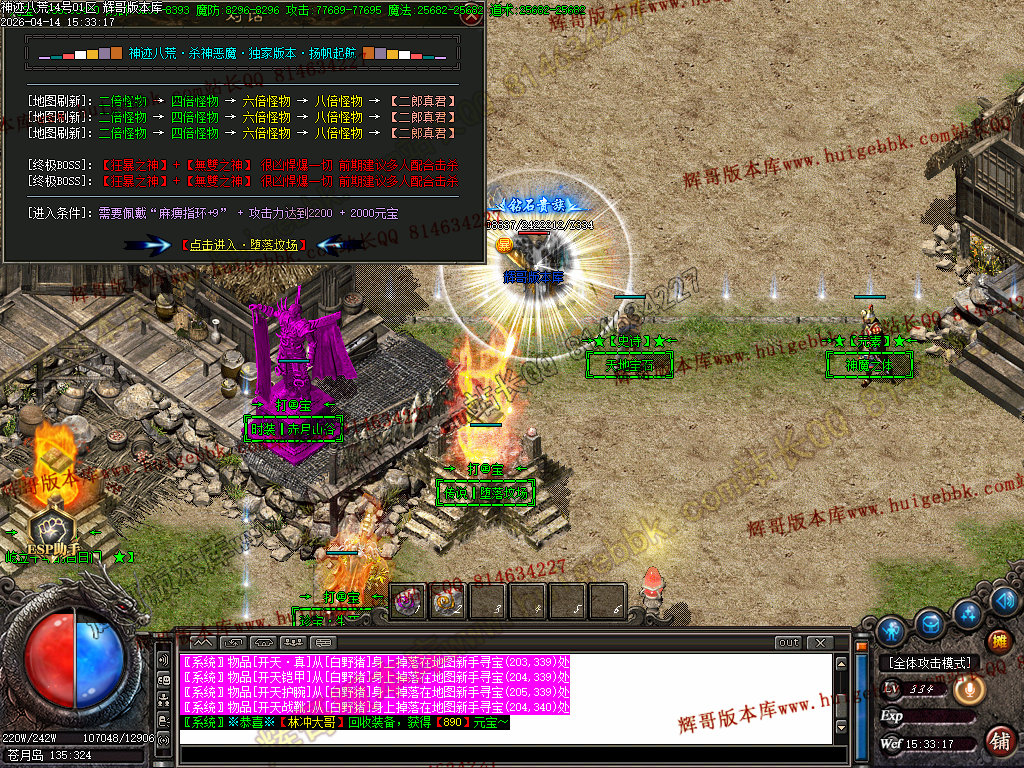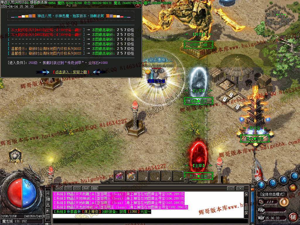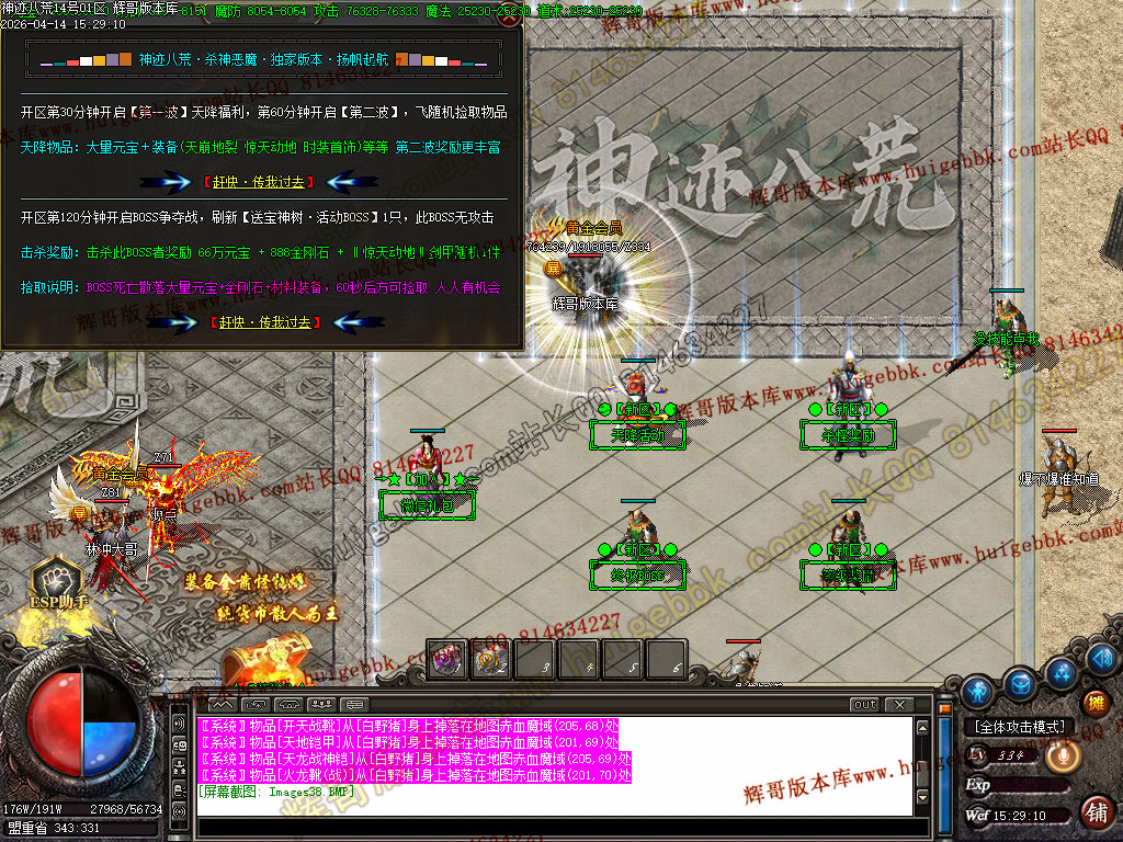 全区活动:(天降财宝)(BOSS争夺)(终极BOSS)