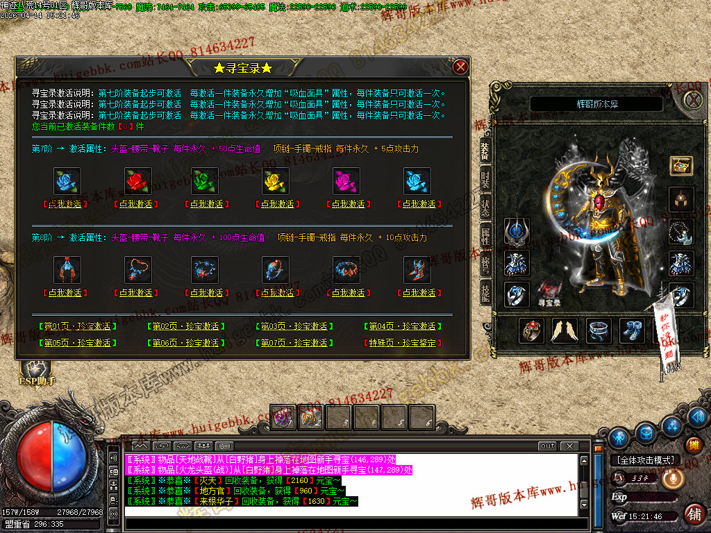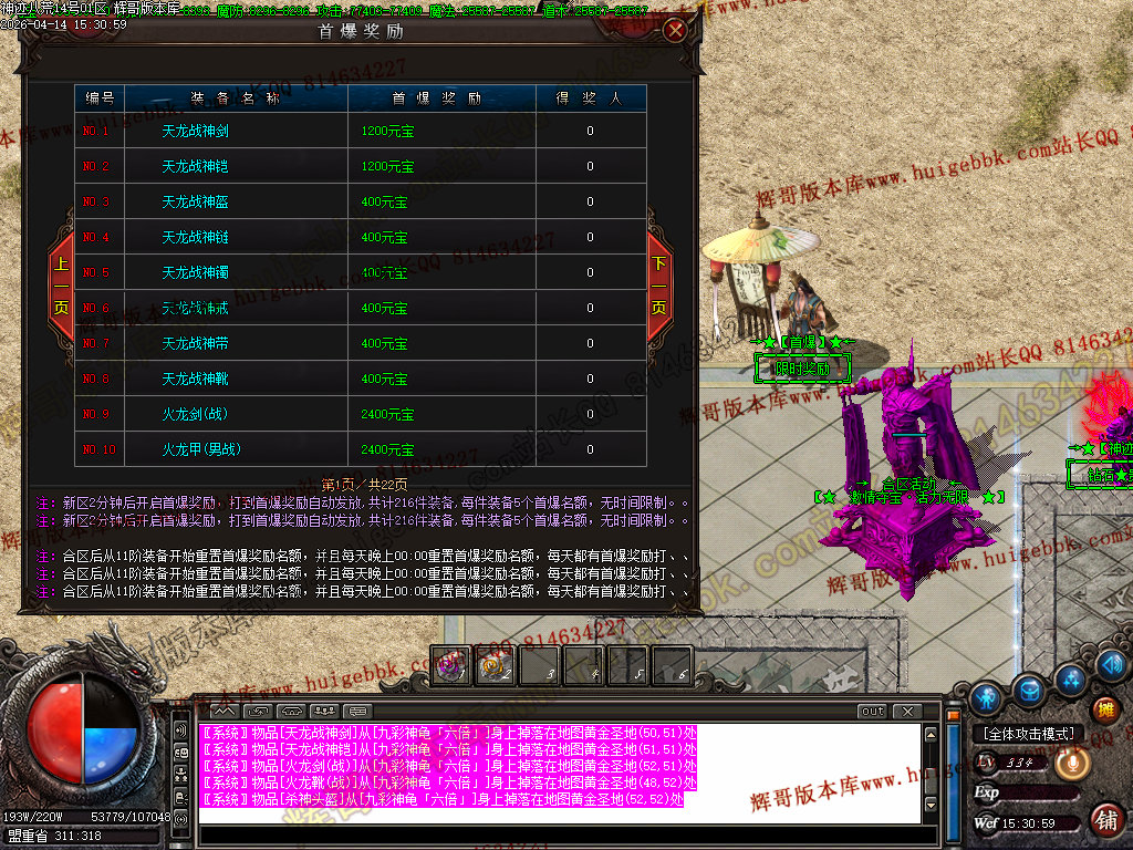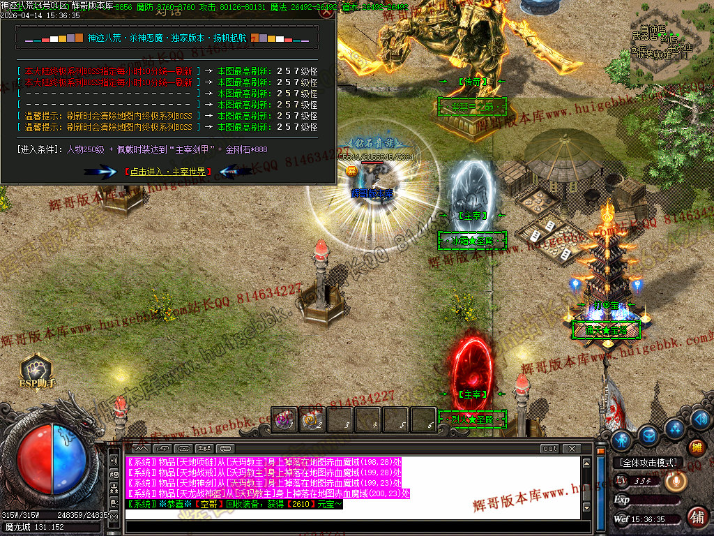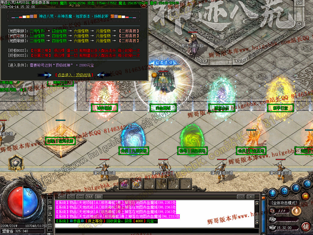 全区活动:(天降财宝)(BOSS争夺)(终极BOSS)