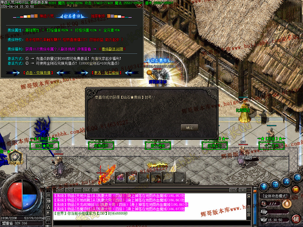 版本介绍:杀神恶魔单职业,复古素材,简单耐玩,攻速快,消费高,共6大陆