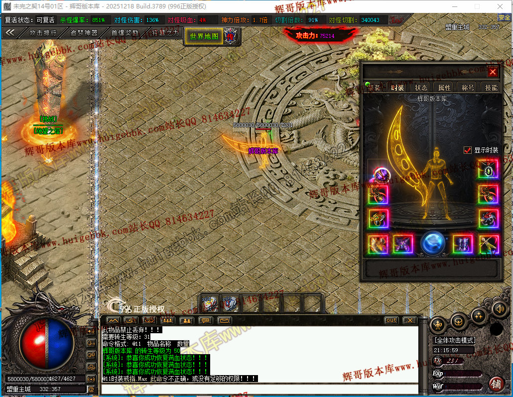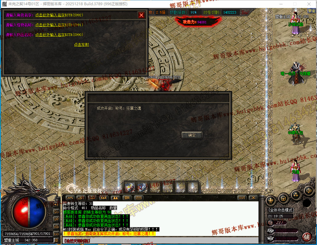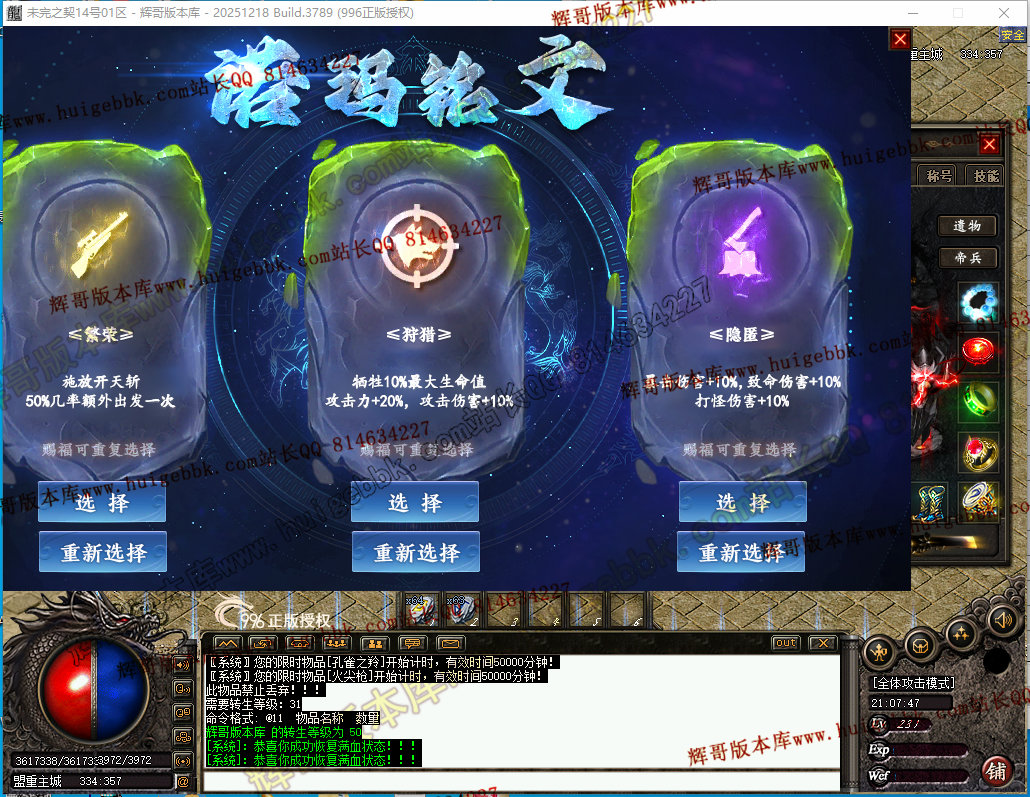如果发现影响开区的大问题,可联系站长进行免费修复,细节问题自己处理不负责细节问题,