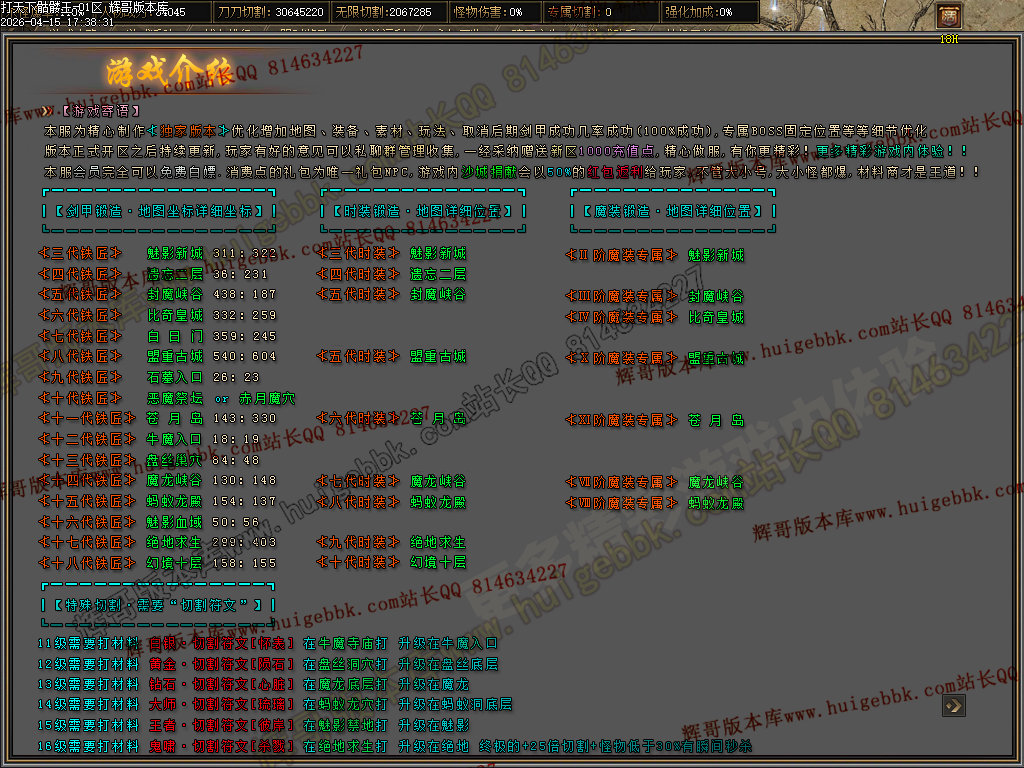 如果发现影响开区的大问题,可联系站长进行免费修复,细节问题自己处理不负责细节问题,
