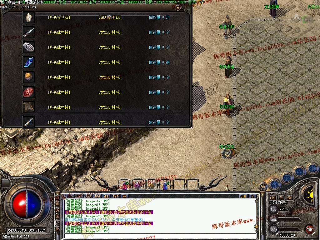 3、地图传送NPC,从初级地图开始打怪,累计材料资源,回收垃圾装备获得货币