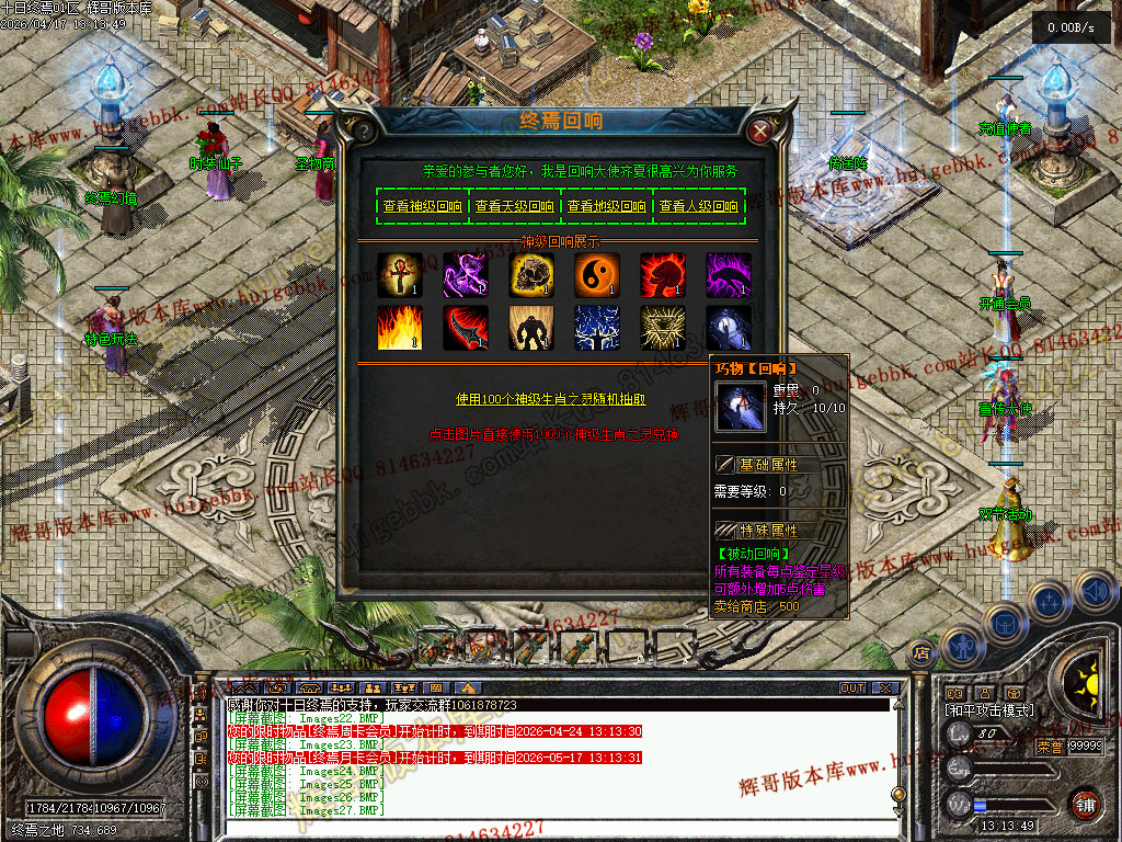 增加无线仓库65535增加永久回城随机石取消地图禁止随机上线自带传功功能修改上线生肖全开
