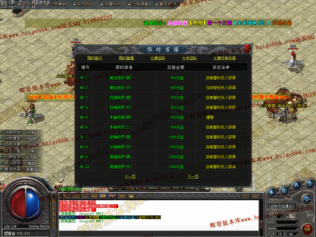 如果发现影响开区的大问题,可联系站长进行免费修复,细节问题自己处理不负责细节问题,