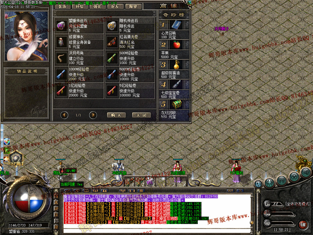 如果发现影响开区的大问题,可联系站长进行免费修复,细节问题自己处理不负责细节问题,