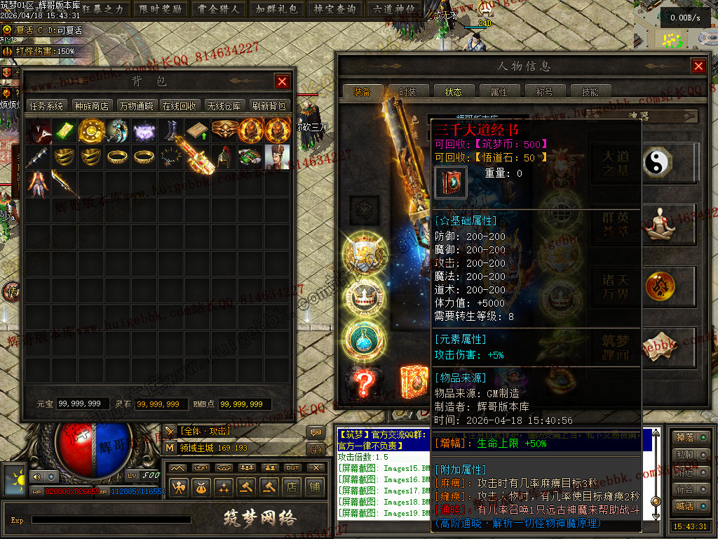 │捐献1888点封榜,打怪伤害+30%,打怪爆率+50%,全属性+5% ,倍功神力+30%,赠送;群体施毒术,攻速+1            │