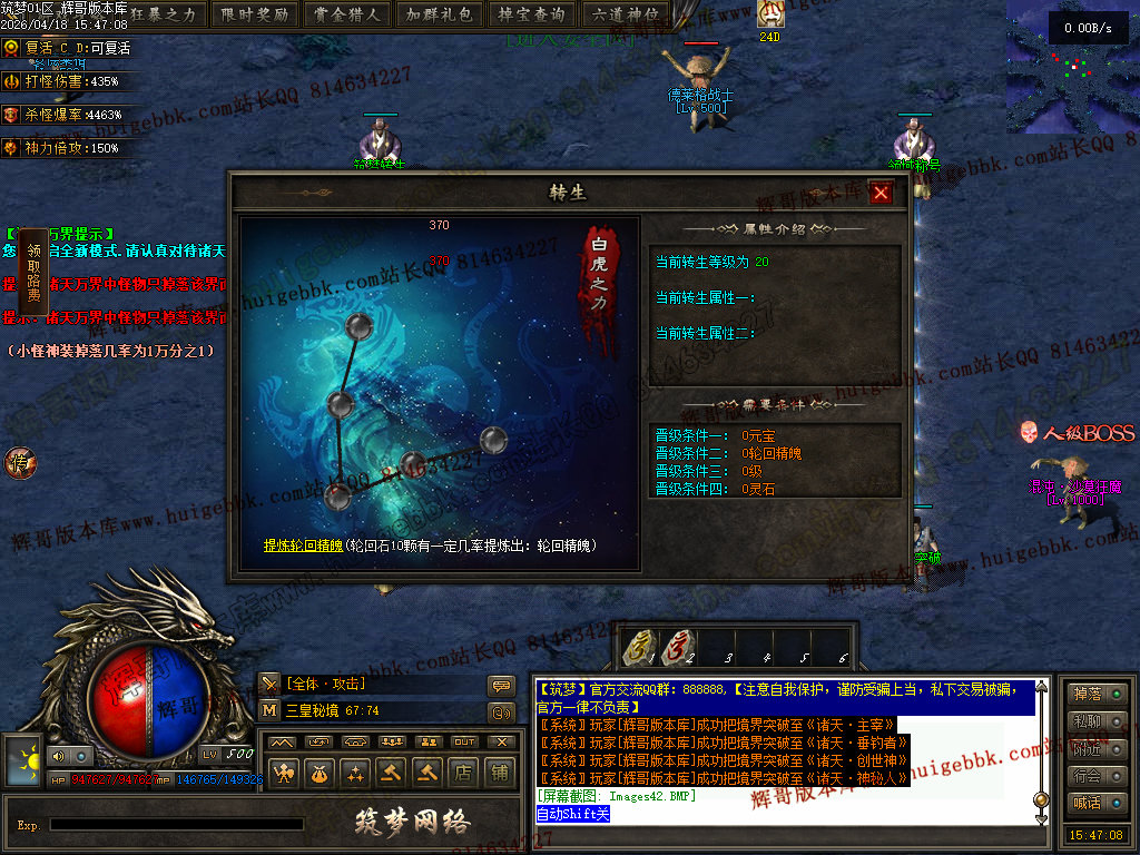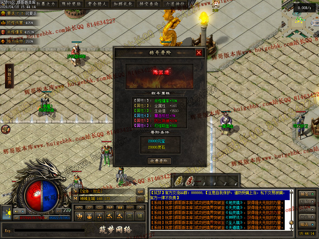 │升级一下称号 轮回转生 重要的事情说三遍 加切割 全属性加成!!!                                            │