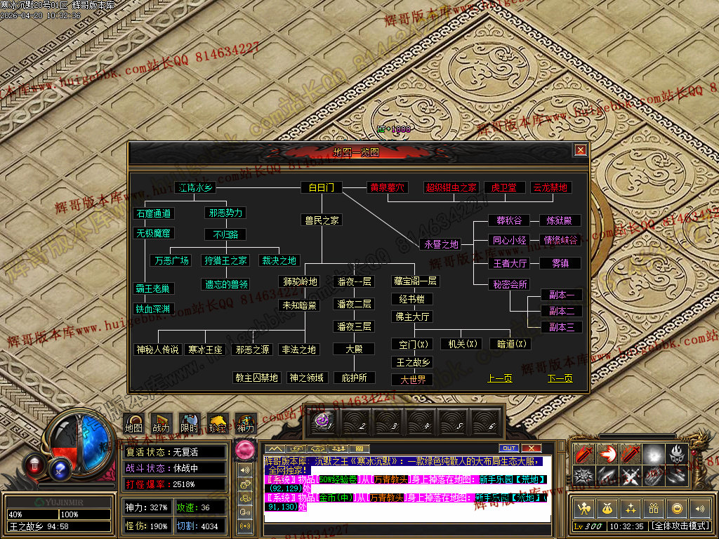 如果发现影响开区的大问题,可联系站长进行免费修复,细节问题自己处理不负责细节问题,
