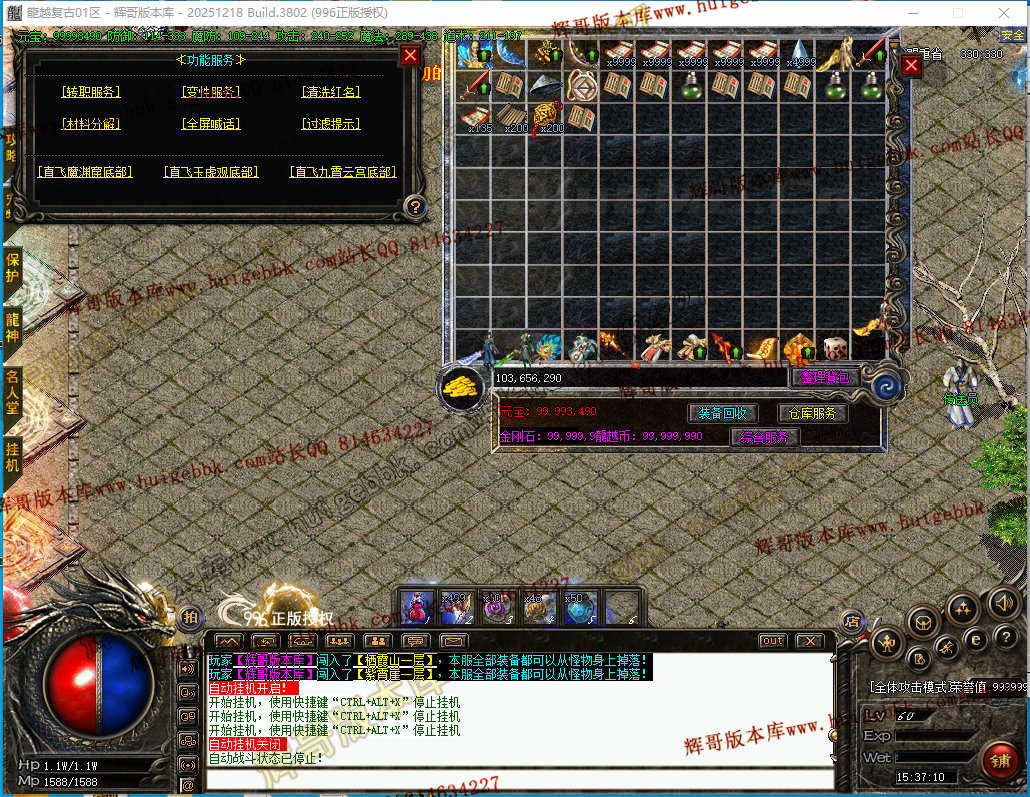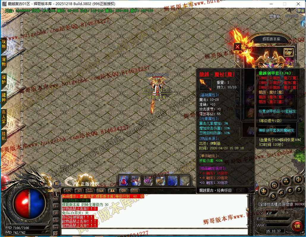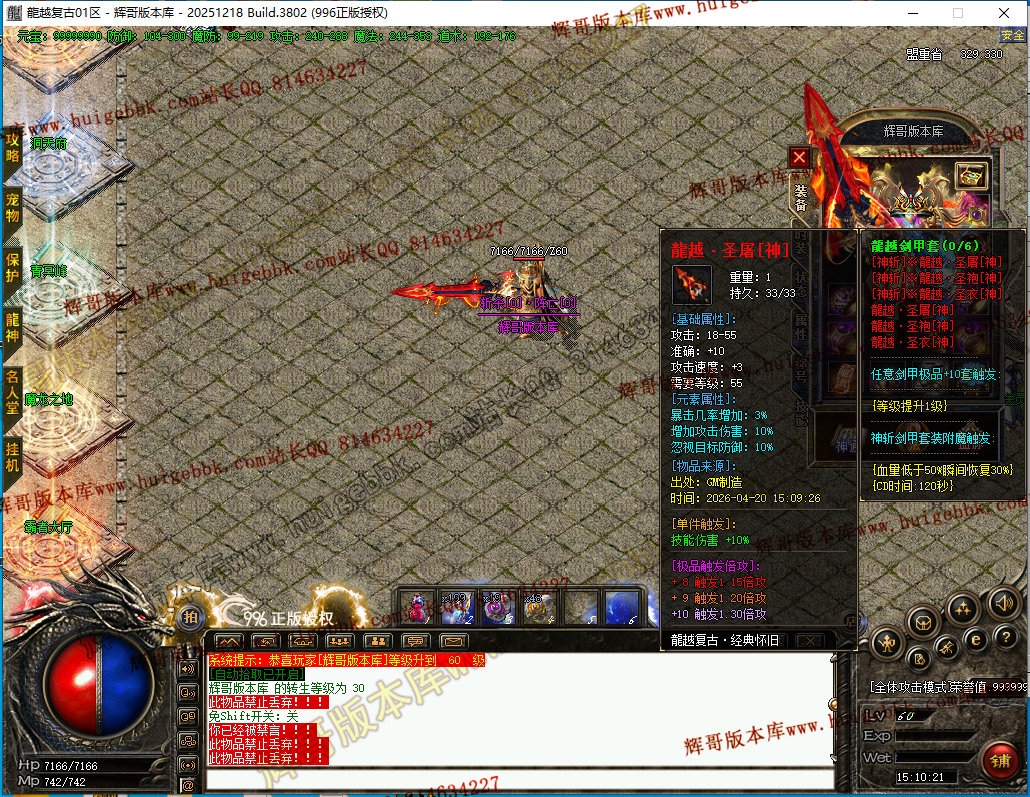 更新4:更新了一套神斩终极套.全靠打3星怪开始爆本服所有装备.完全看脸追梦