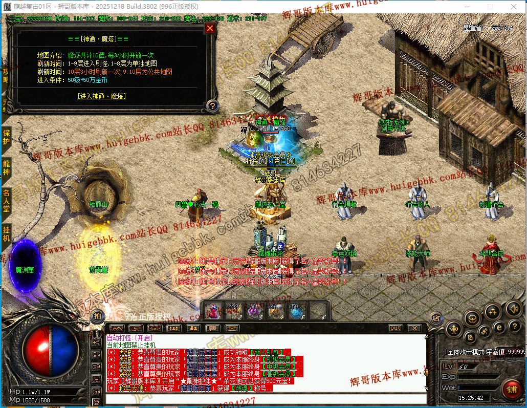 更新1:更新了神通BUFF:神通在50级魔塔跟55级神塔可爆出成品.几率是外面地图5-10倍.也可以打碎片在庄园免费兑换神通BUFF!