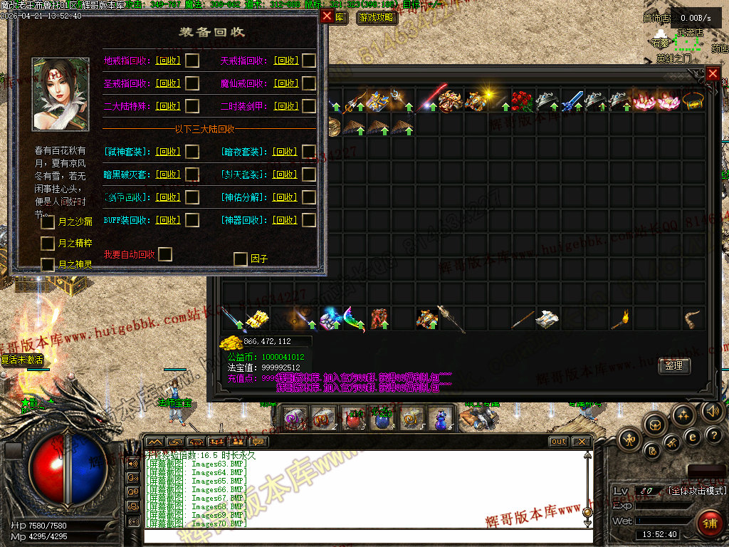 1:增加背包神器 是杀怪加货币(按血量加) 不需要的端里有替换删除背包神器文件