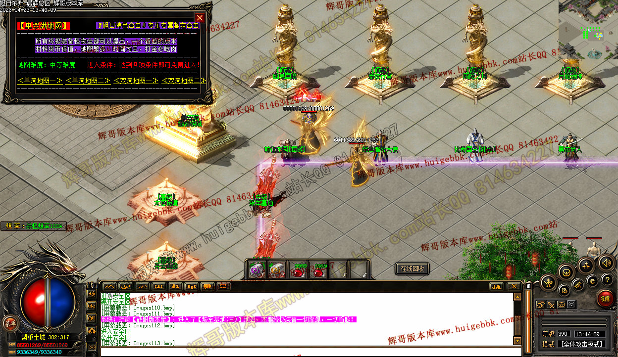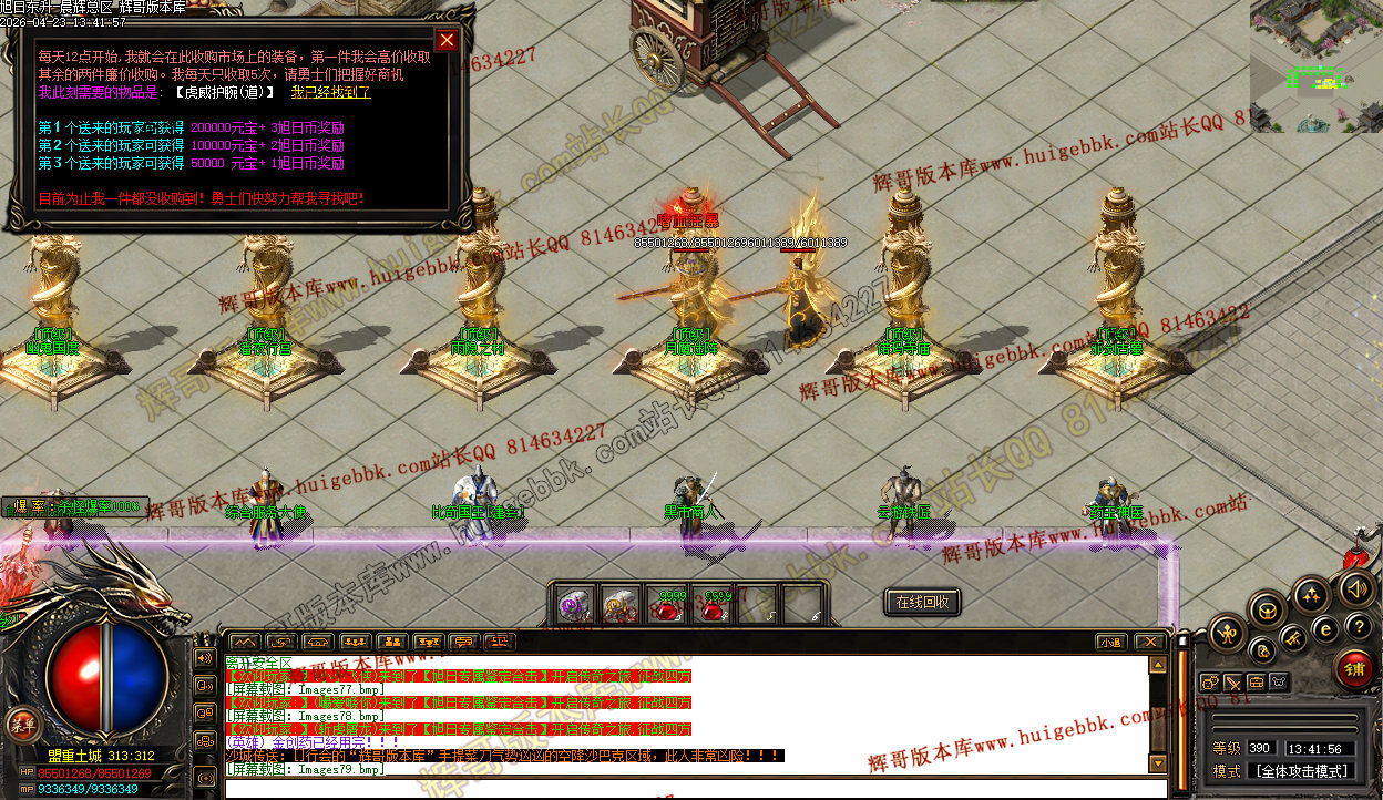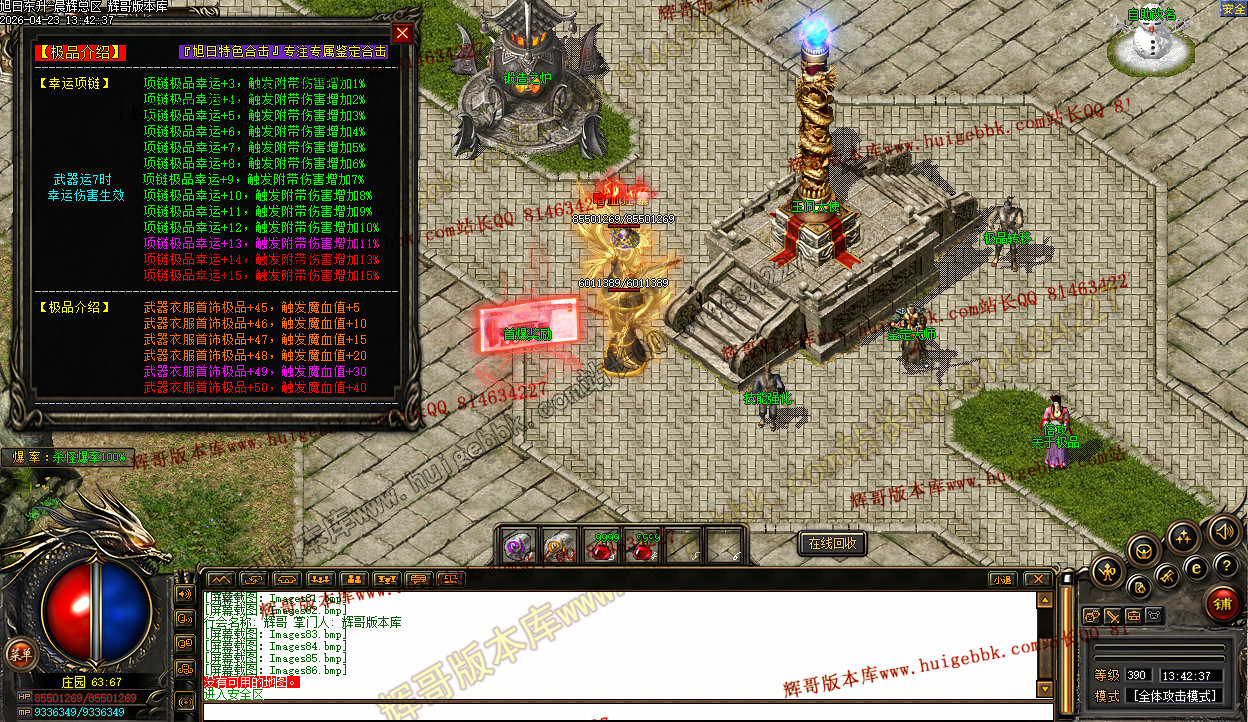 3、上线三职业疯狗模式,自动入包,自动回收,没有门槛,爆率全开,所有终极特殊只要是你能看到的装备一切皆有爆率,一个会员打通关。