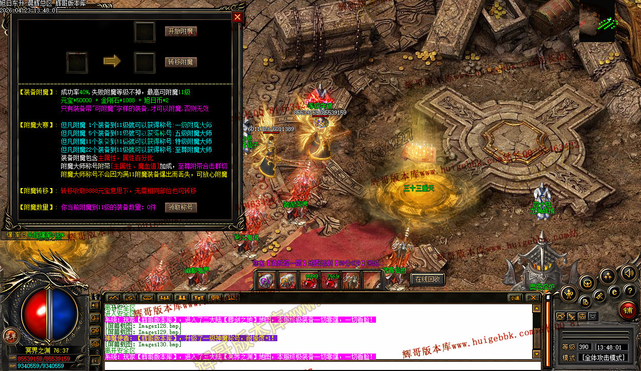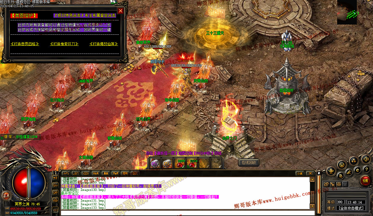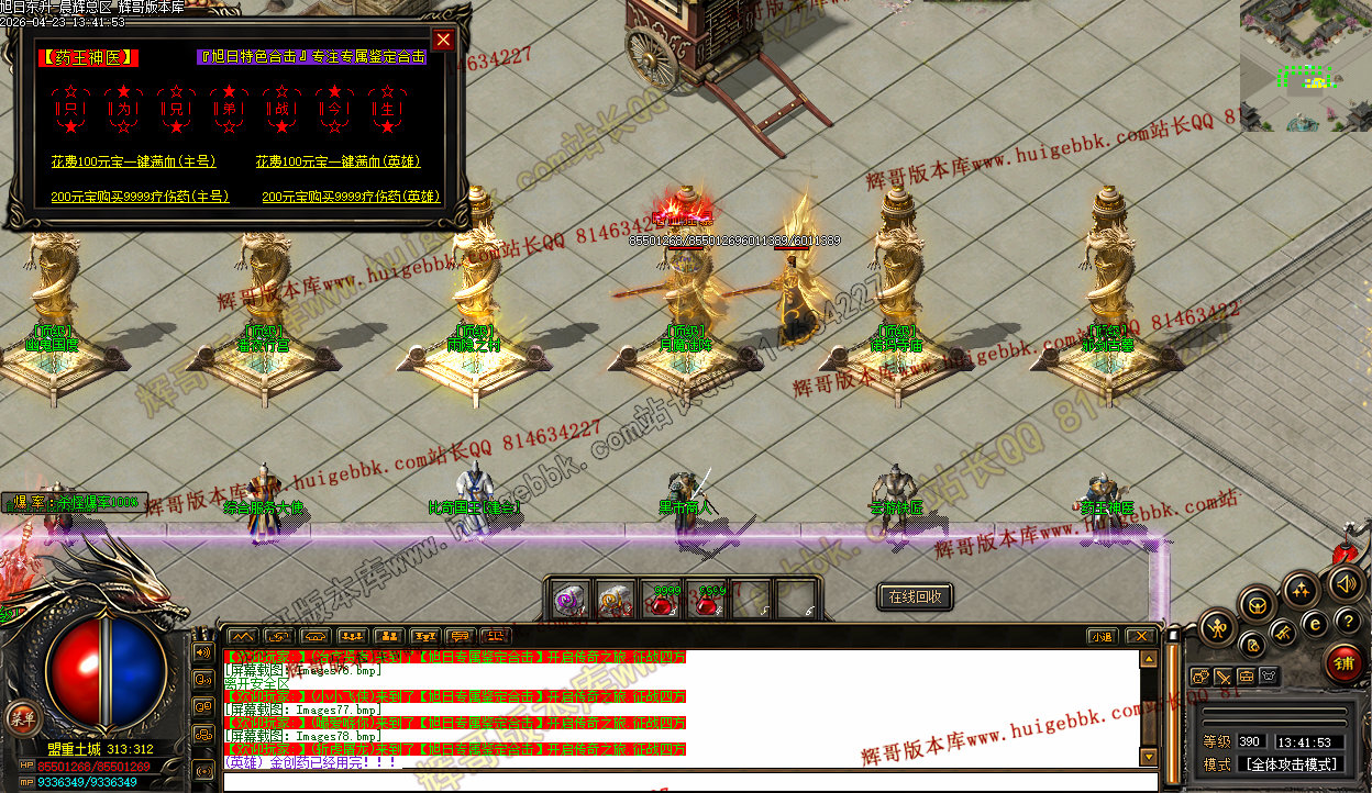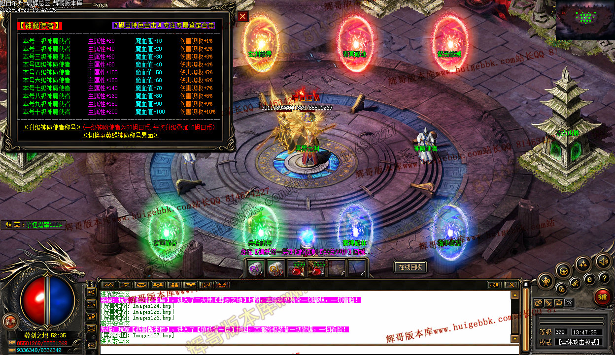 3、上线三职业疯狗模式,自动入包,自动回收,没有门槛,爆率全开,所有终极特殊只要是你能看到的装备一切皆有爆率,一个会员打通关。