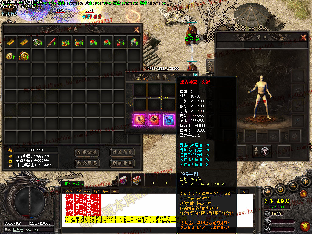 版本特色:本服装备全部由单件触反属.小怪全爆