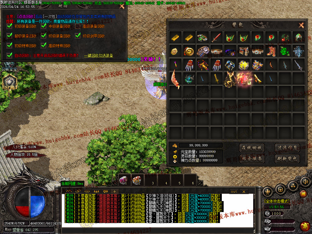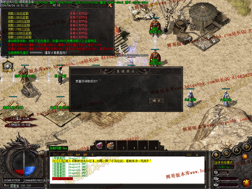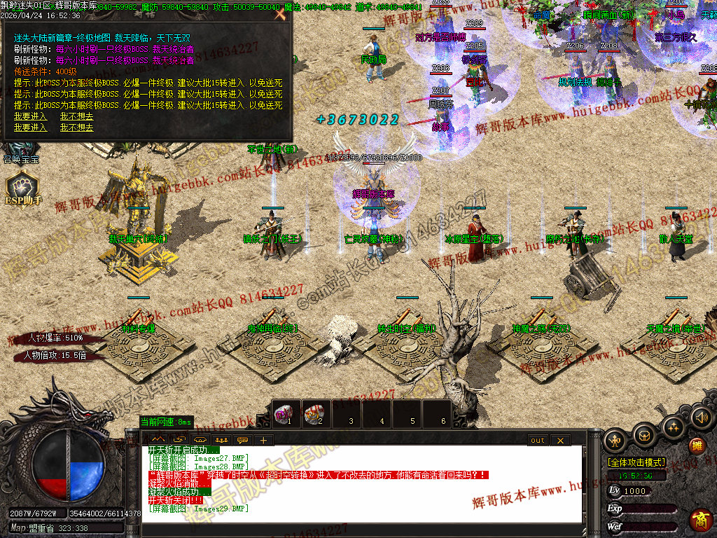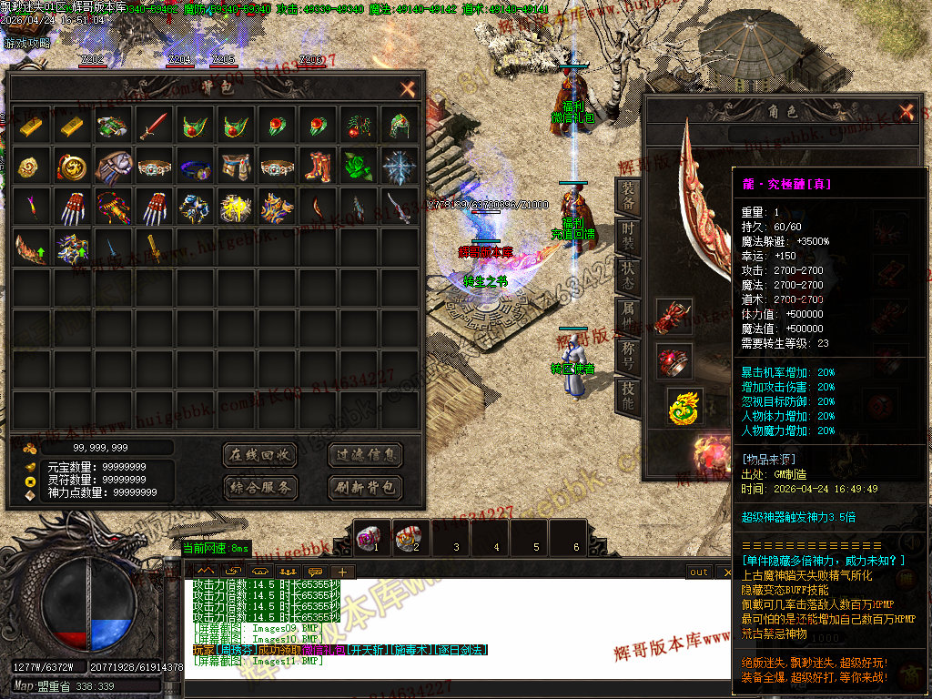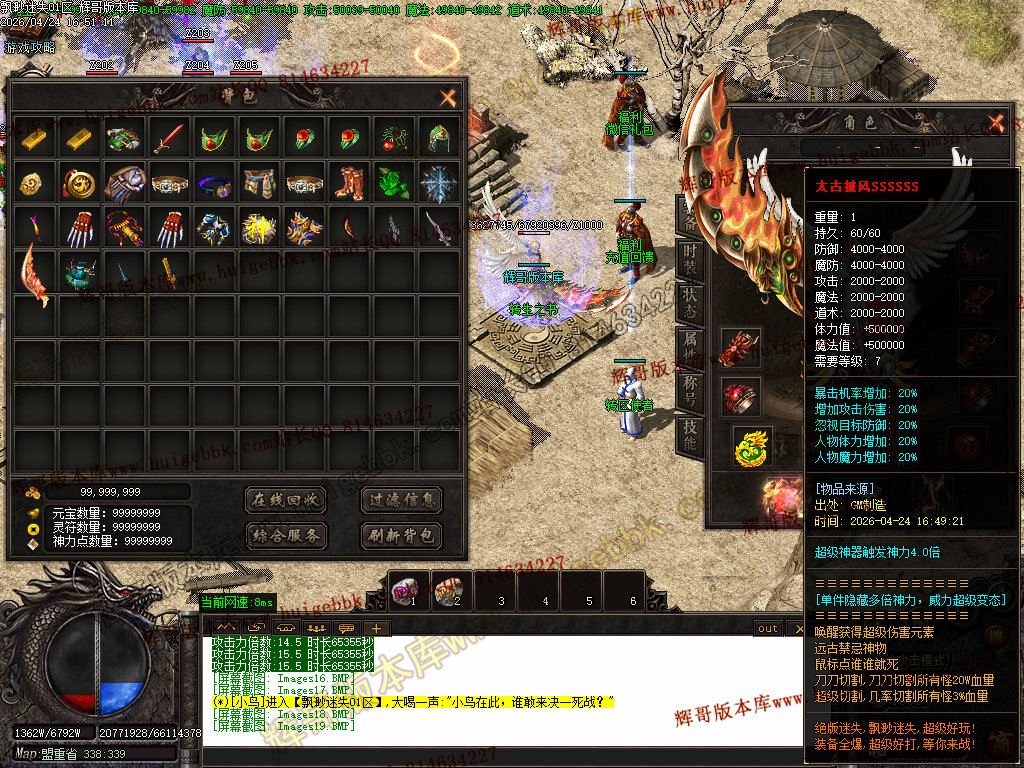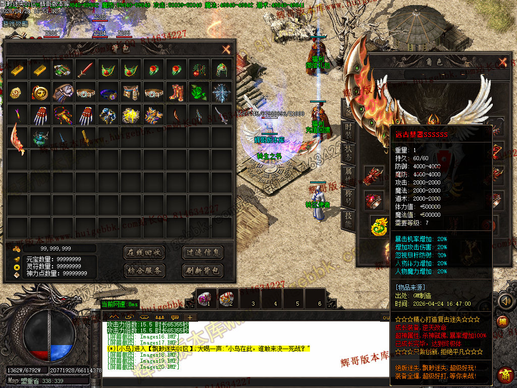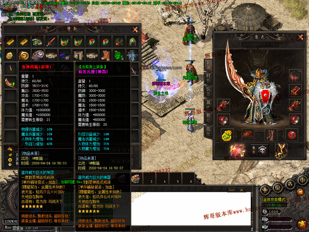 版本特色:所有地图免费进入;上干件神器,全靠BOSS爆出!