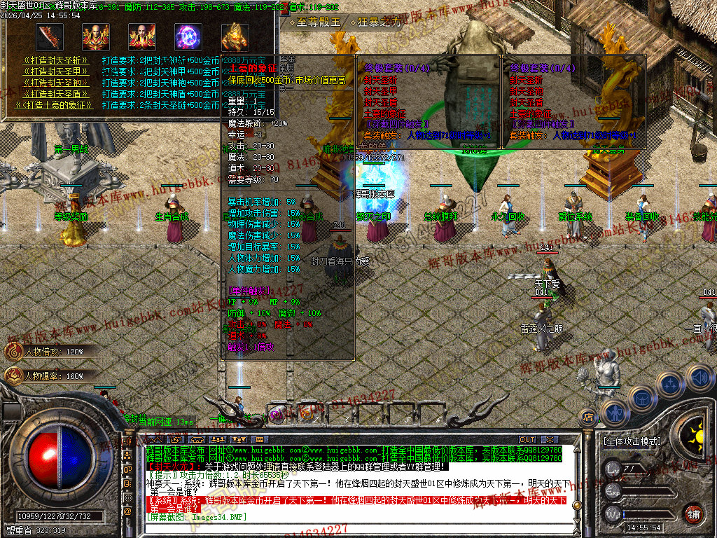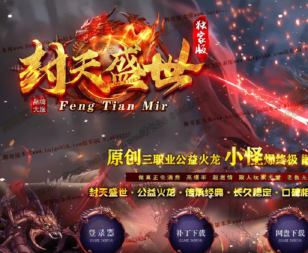 装备阶梯:雷霆→→战神→→火龙→→盛世→→龙腾→→封天神装(所有装备可爆出)