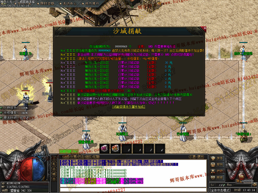 【游戏介绍】:RMB玩家沙捐必捐献打怪刀刀2%,加RMB狂暴刀刀冰冻,狂暴只能开一种.!
