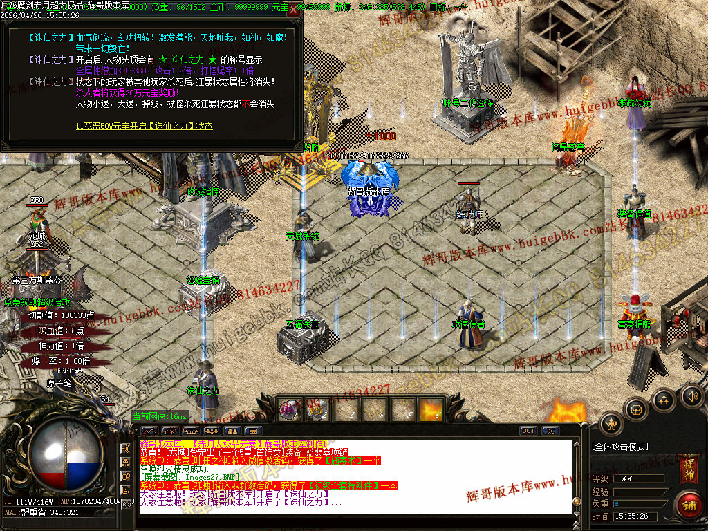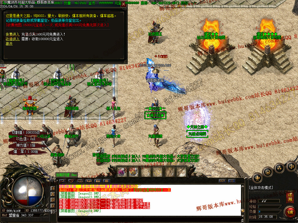 【1.76赤月大极品】进入地图的机会,只能靠(地图入场券)增加次数,(地图入场券)每个怪物都有爆出!