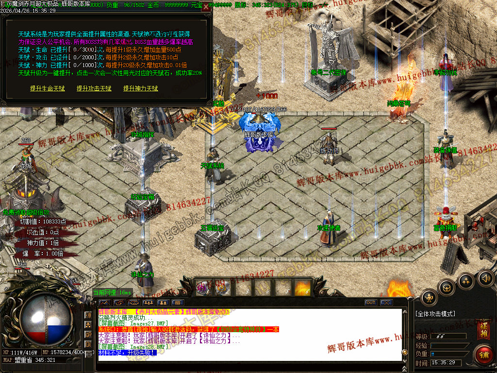 【1.76赤月大极品】天赋系统三种,生命天赋,胜利天赋,攻击天赋,天赋可强化1000次,功能强大自己体验!