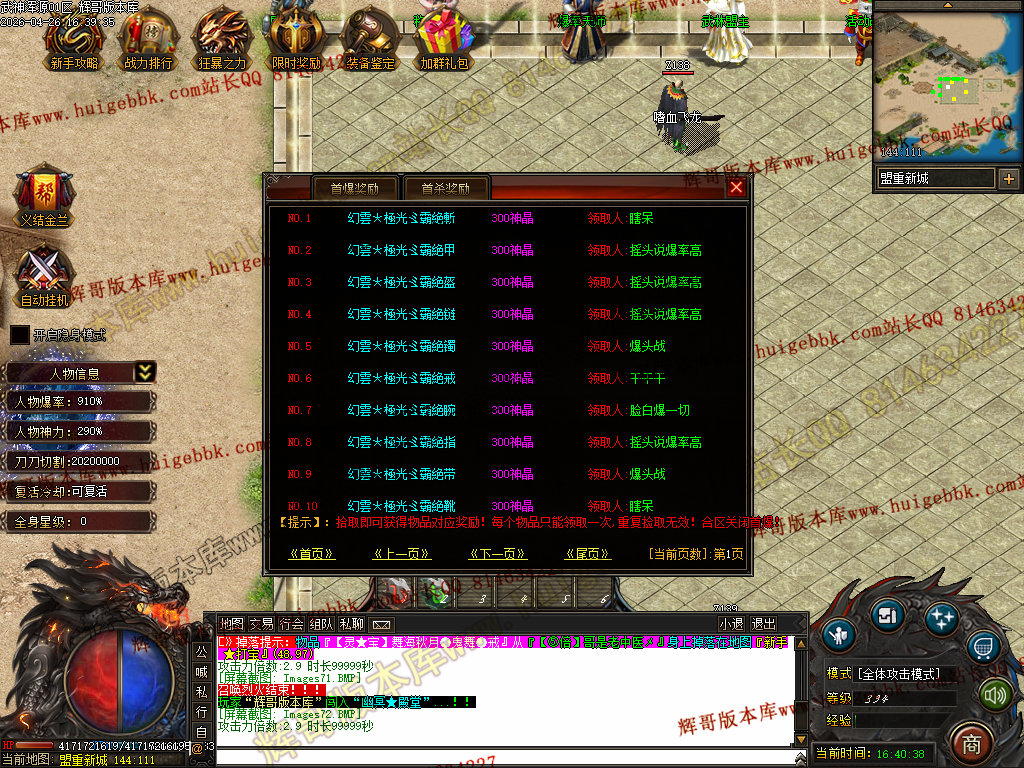 如果发现影响开区的大问题,可联系站长进行免费修复,细节问题自己处理不负责细节问题,