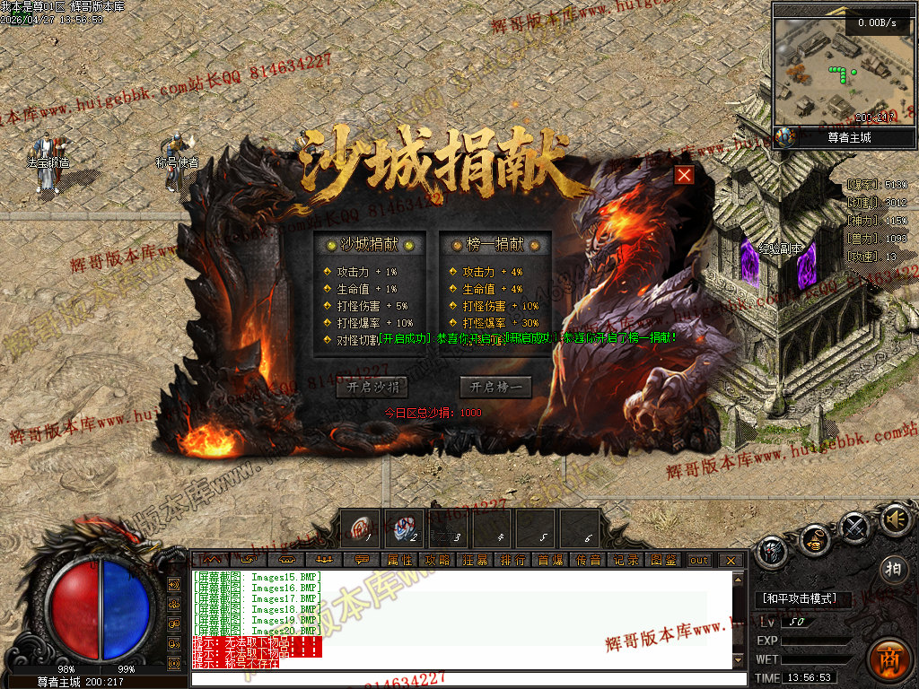 沙城捐献:攻击力 +1%,生命值 +1%,打怪伤害 +5%,打怪爆率 +10%,对怪切割 +20