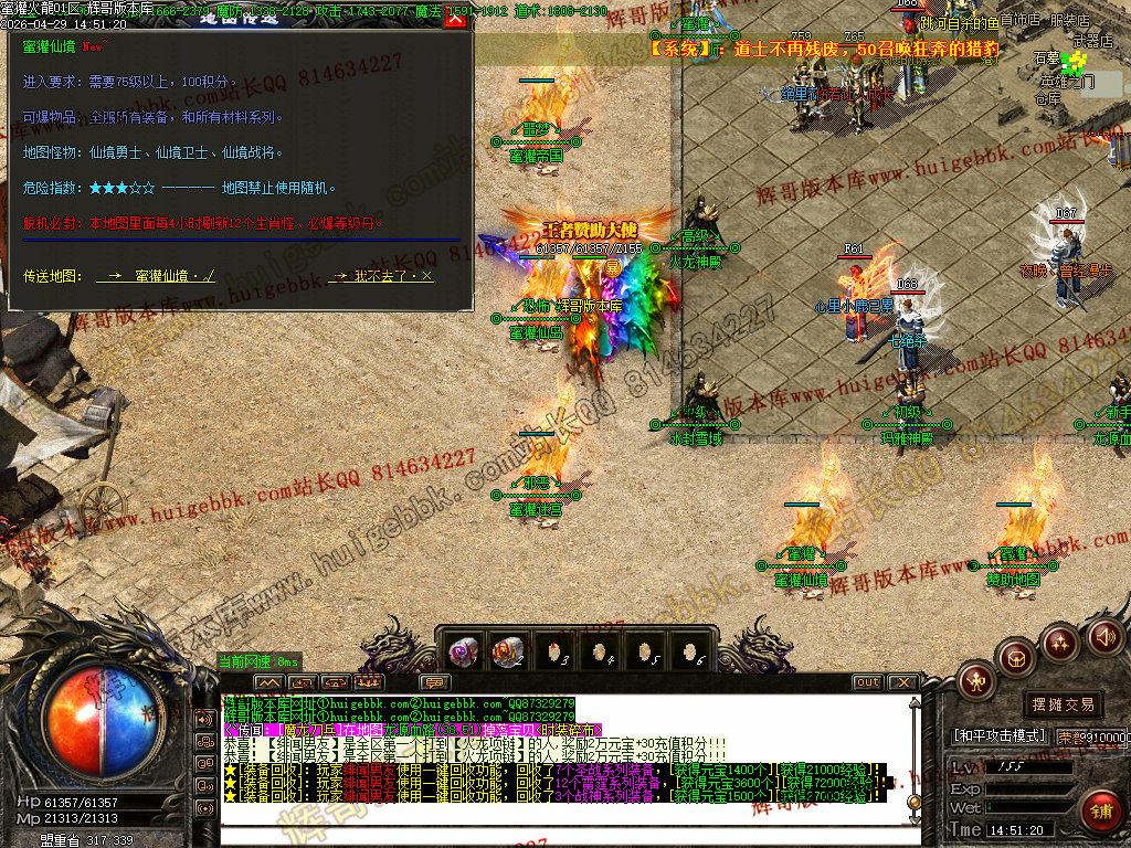 推荐职业:战士方便挂机、打BOSS,法师群小怪快刷元宝自然就快